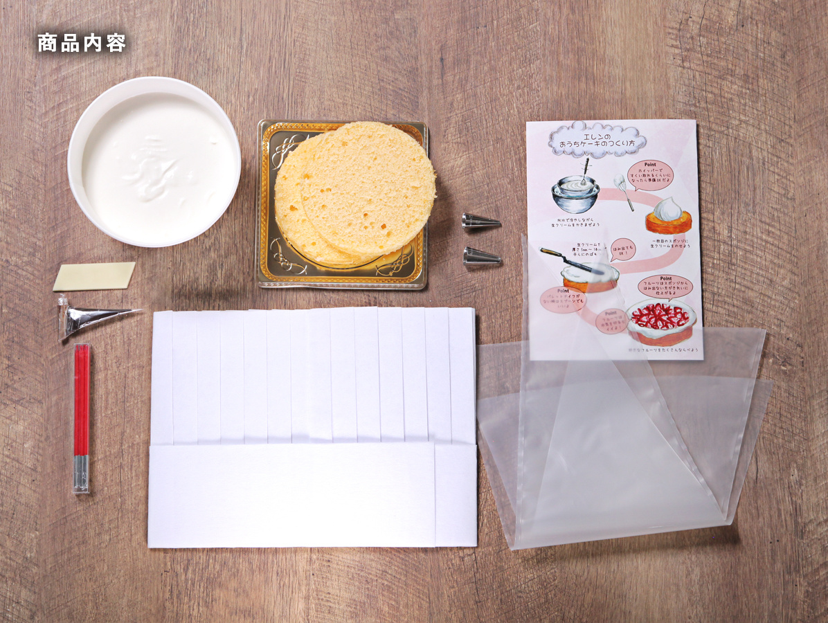 | 調理方法 | 2枚のスポンジケーキの間にフルーツや付属のオリジナル生クリームをサンド。絞りがねを使って |