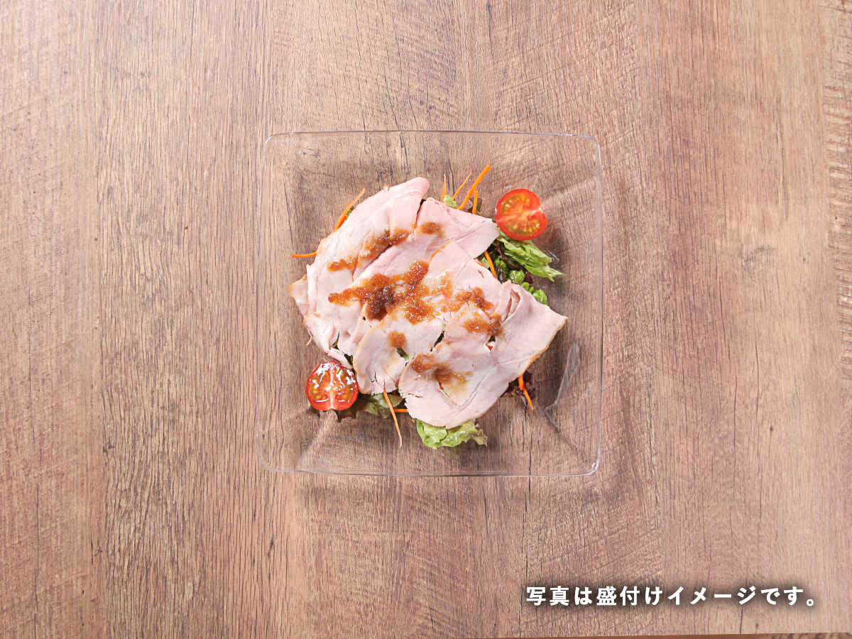 | 料理説明 | 群馬県産の坂東もち豚のロース肉を1時間かけゆっくりと火入れし、薄くスライス。 果物やにんにくを使った特製ソースをかけてお召しあがりください。 |